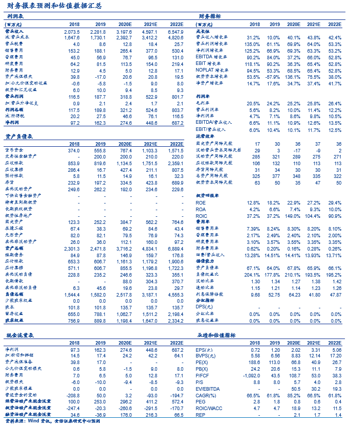 ■全球光伏支架領(lǐng)先企業(yè),將受益裝機量持續(xù)增長。近年來,公司順應光伏行業(yè)發(fā)展趨勢,積極布局光伏跟蹤支架產(chǎn)品,通過研發(fā)團隊的持續(xù)攻關(guān),目前已在各個光伏支架領(lǐng)域形成完整布局,公司光伏支架累計安裝量近24GW,并在全球24個國家市場成功安裝了近900個項目;公司自2016至今,經(jīng)營穩(wěn)定,2016-2019營收和凈利三年CAGR分別為44%和67%,且毛利率較高的跟蹤支架近年來份額持續(xù)提升,疊加公司海外業(yè)務比重上行,2020年前三季度,公司分別實現(xiàn)毛利率和凈利率22.93%和9.39%,近年來盈利能力穩(wěn)中有升。光伏裝機方面,Q4需求旺盛,同時海外需求強勁復蘇,內(nèi)外共振行業(yè)景氣向上,且2021年需求確定性依然較高,明年往后,光伏迎來全球平價時代,未來需求可清晰預測且波動變小,光伏將成為新能源發(fā)電的最重要力量,未來公司將受益光伏裝機量持續(xù)增長。