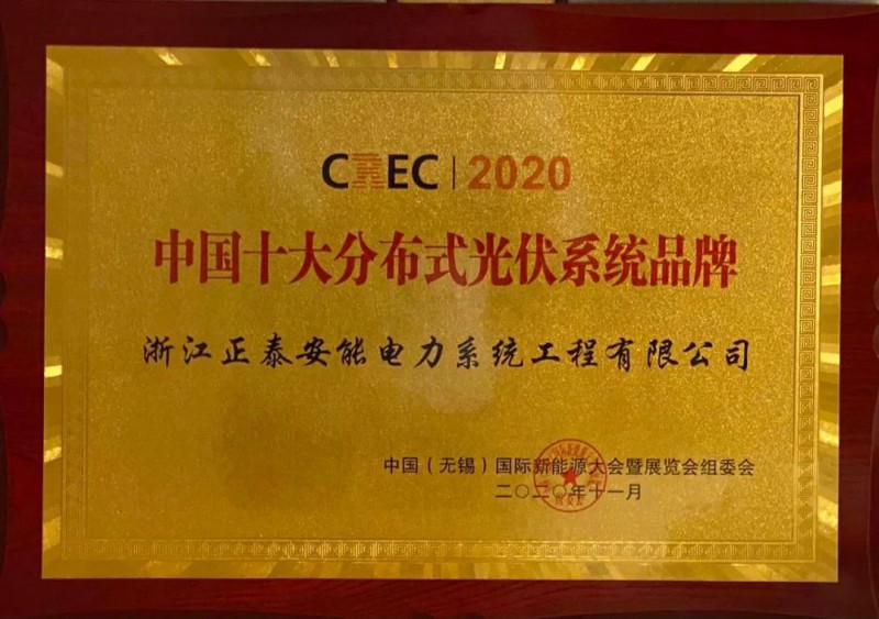 為突出行業品質品牌的日趨重要性,共促新能源市場健康發展,組委會發起“中國十大分布式光伏系統品牌”評選,正泰安能在戶用光伏發電系統全壽命期管控能力及投運電站運行績效方面達到戶用光伏優秀品牌的標準,再度獲行業、市場及專家團隊的高度認可,獲得“中國十大分布式光伏系統品牌”獎項!至此,正泰安能已經連續四年獲得此項榮譽。