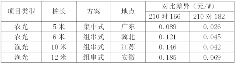 210產(chǎn)品的550W、600W以及660W,都是為大型地面電站設(shè)計(jì)的產(chǎn)品,目前進(jìn)入量產(chǎn)的型號(hào)是550W。我們搜集了河北能源工程設(shè)計(jì)院和山東電力工程咨詢?cè)簝杉覇挝粚?duì)于此款型號(hào)在不同緯度項(xiàng)目的系統(tǒng)造價(jià)差異對(duì)比結(jié)果,如下表: