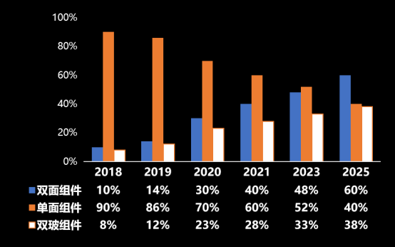 此外,筆者認為,玻璃企業也要積極擁抱市場競爭。既有玻璃企業內部的競爭,也有來自透明背板等相似產品的競爭。根據相關專家統計,2019年,雙面組件市場占有率約為14%,而雙玻組件市場占有率約為12%,也就是說,透明背板產品占據了2%的市場份額。預計2020年,透明背板的市場份額將達到7%,到2025年可能達到22%。如果玻璃企業滿足于目前的高額利潤,很可能迫使下游選擇其他技術路線。只有充分的市場競爭,才能讓企業充滿活力,不斷創新,為實現2030年碳排放達峰、2060年碳中和的宏偉目標持續奮斗。