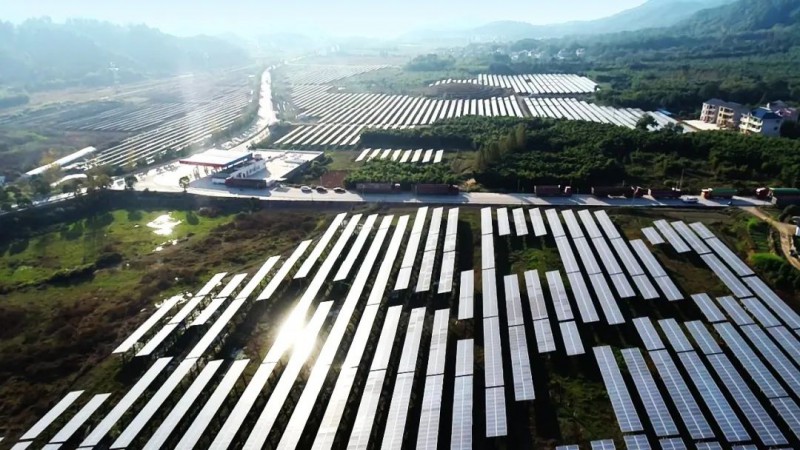 ▲空中俯瞰萬年縣石鎮鎮“農光互補”項目