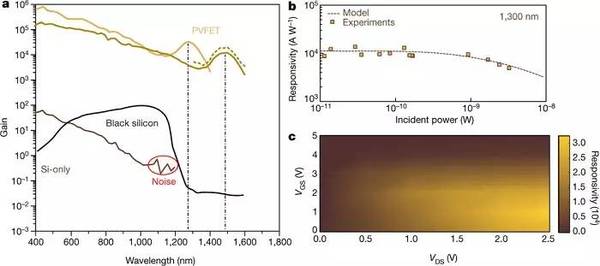 這種Si:CQD PVFET具有高增益、寬譜響應(包含紅外波段)、高響應速度和包含暗電流等優點。其性能可以通過先進的硅工藝進一步提升。該工作亮點在于,將成熟的硅電子工藝和CQDs的突出優勢相結合,發明出兩者兼有并互補的新型器件結構。該工作對于理解基于光伏效應和跨導增益的探測機制有很大的杠桿促進作用。