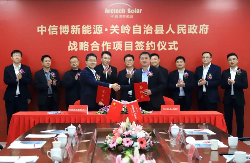 中信博營銷中心負責人容崗與關嶺縣縣委常委副縣長石藩代表雙方簽署了投資協議,關嶺縣縣委書記黃波、卓陽能源集團有限公司董事長黃俊以及關嶺縣縣委辦、自然能源局、文體廣電旅游局、投資促進局等單位出席。中信博董事長蔡浩、財務負責人王程、首席技術官王士濤、副總經理供應鏈中心負責人孫國俊等共同見證了簽約儀式。