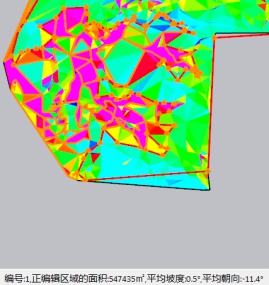 第四步:輔助分析布置間距。此時的山體被“解析”成了許多三角形,軟件會根據預設的擬布置方陣尺寸和傾角對每一個“三角形”進行分析計算,得到適合的布置間距。軟件對三角面的解析以及一些其他的分析計算量特別大,越復雜的山體對計算機的配置要求越較高。建議采用有獨立的顯卡的計算機,內存建議16G。