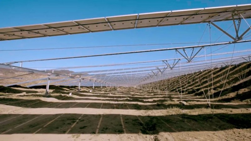 特變電工新能源利用采煤復(fù)墾區(qū)域的平地和坡地相結(jié)合的綜合利用土地理念,在建設(shè)過程中首次采用柔性支架以及大坡度大跨距斜坡支架技術(shù),有效地降低項目整體建設(shè)成本,提高安全耐用性、抵御大風(fēng)破壞。特變電工新能源項目負(fù)責(zé)人介紹,“相同土地面積的區(qū)域,柔性支架的容量約為常規(guī)固定支架的3倍,極大地提升土地利用率,在土地緊缺的情況下確保項目的全容量布置”。