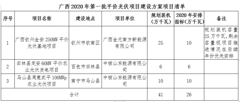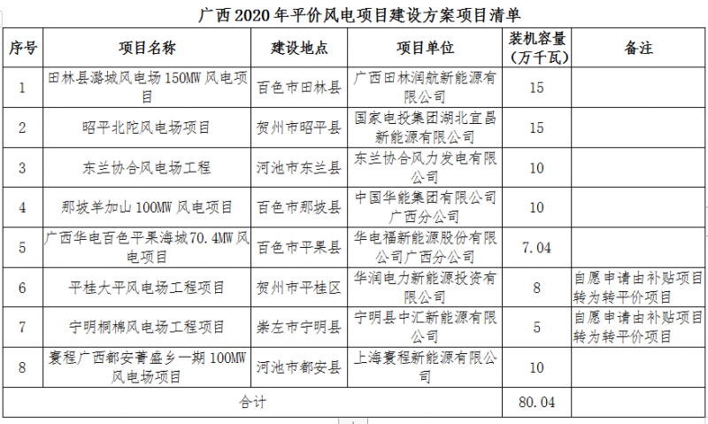 根據(jù)《國家能源局關(guān)于2020年風(fēng)電、光伏發(fā)電項(xiàng)目建設(shè)有關(guān)事項(xiàng)的通知》(國能發(fā)新能〔2020〕17號)要求,我局根據(jù)競爭性配置評分結(jié)果及廣西電網(wǎng)有限責(zé)任公司消納意見,統(tǒng)籌制定了2020年平價(jià)風(fēng)電和第一批平價(jià)光伏項(xiàng)目建設(shè)方案,現(xiàn)印發(fā)給你們,并就有關(guān)事項(xiàng)通知如下: