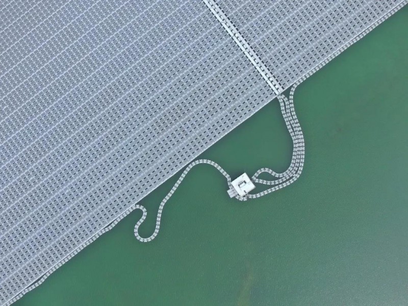 為此,華能集團在工程建設、設備選型等方面進行了創新,對浮管式光伏陣列進行優化,將固定浮管的支撐放置在浮管的上方,支架與水面脫離,避免水對支架的直接腐蝕;加大單根浮管的直徑,增大陣列整體浮力;減少浮管數量,減小拼接工程量等。