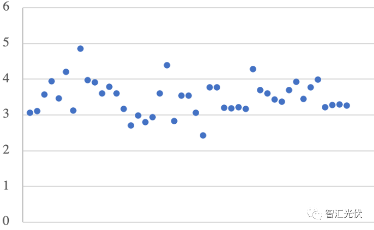 上圖為51個EPC中標價格(含組件、逆變器),2.43~4.85元/W之間,加權平均價格為3.28元/W;考慮到非技術成本,總成本大致在3.5~4元/W之間。