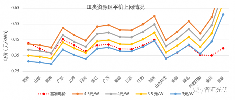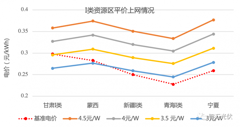 不同資源區的平價上網情況如下面的圖表所示。