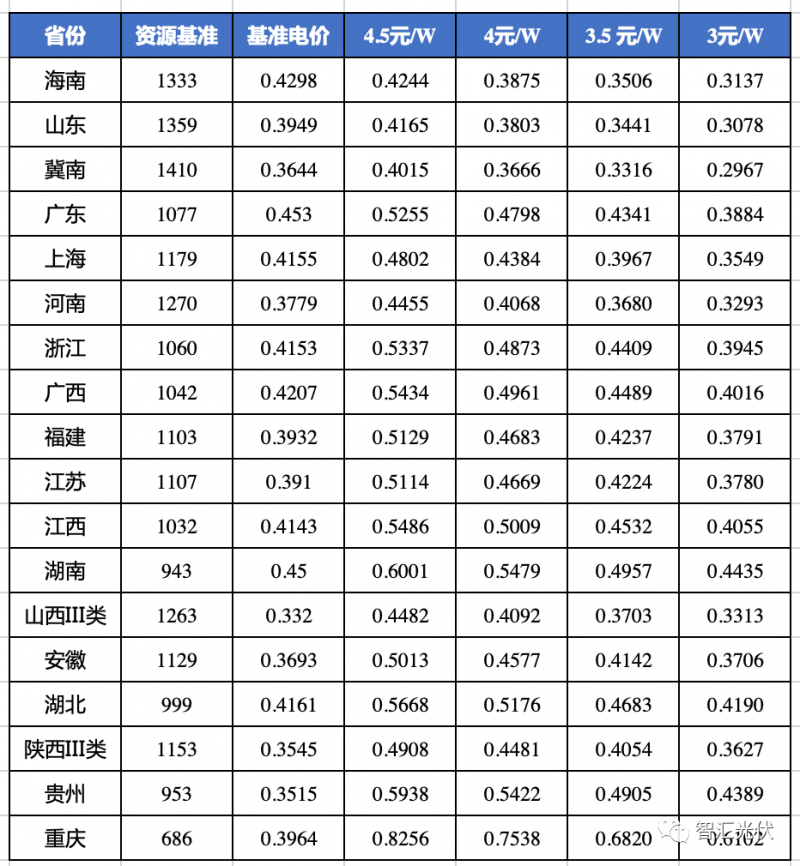青海、寧夏的基準電價比3元/W時的反算電價還低,說明即使在3元/W,這兩個省的光伏項目,也很難以基準價實現8%的收益。