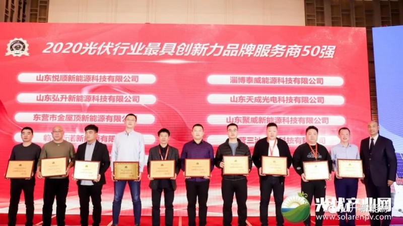 右三弘升新能源張超總經理上臺領2020光伏行業最具創新品牌服務商50強獎
