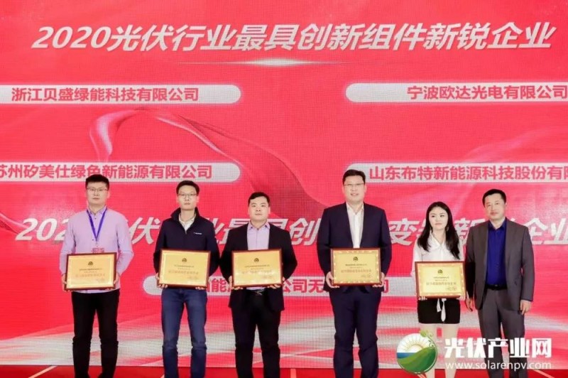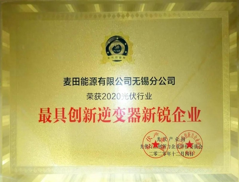 同期還舉行了一年一度的「PVTOP50」2020光伏創新榜榜單發布暨頒獎典禮,麥田能源榮獲“2020光伏行業最具創新逆變器新銳企業”,載譽而歸。