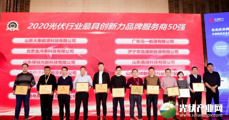 元一能源受邀出席本次大會。在「PVTOP50」2020光伏創(chuàng)新榜頒獎典禮上,元一能源榮獲“2020光伏行業(yè)最具創(chuàng)新力品牌服務商50強”、“2020‘光伏+’最具創(chuàng)新力企業(yè)”兩項重磅大獎。