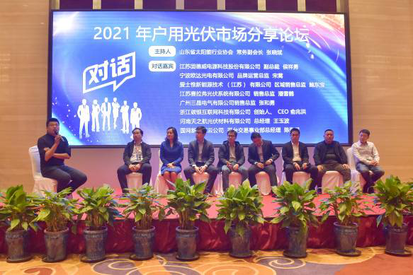 年會的最后,山東省太陽能行業協會常務副會長張曉斌主持了對話環節。廣州三晶電氣、固德威、愛士惟、歐達光電、河南天之航、國網新能源云等嘉賓參加對話。大家對分布式光伏發展的熱點、難點、焦點進行了探討和總結,精彩的對話博得臺下陣陣掌聲。