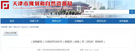 (濱海新區)行政處罰決定書(津規資(濱海)罰〔2018〕3056號)