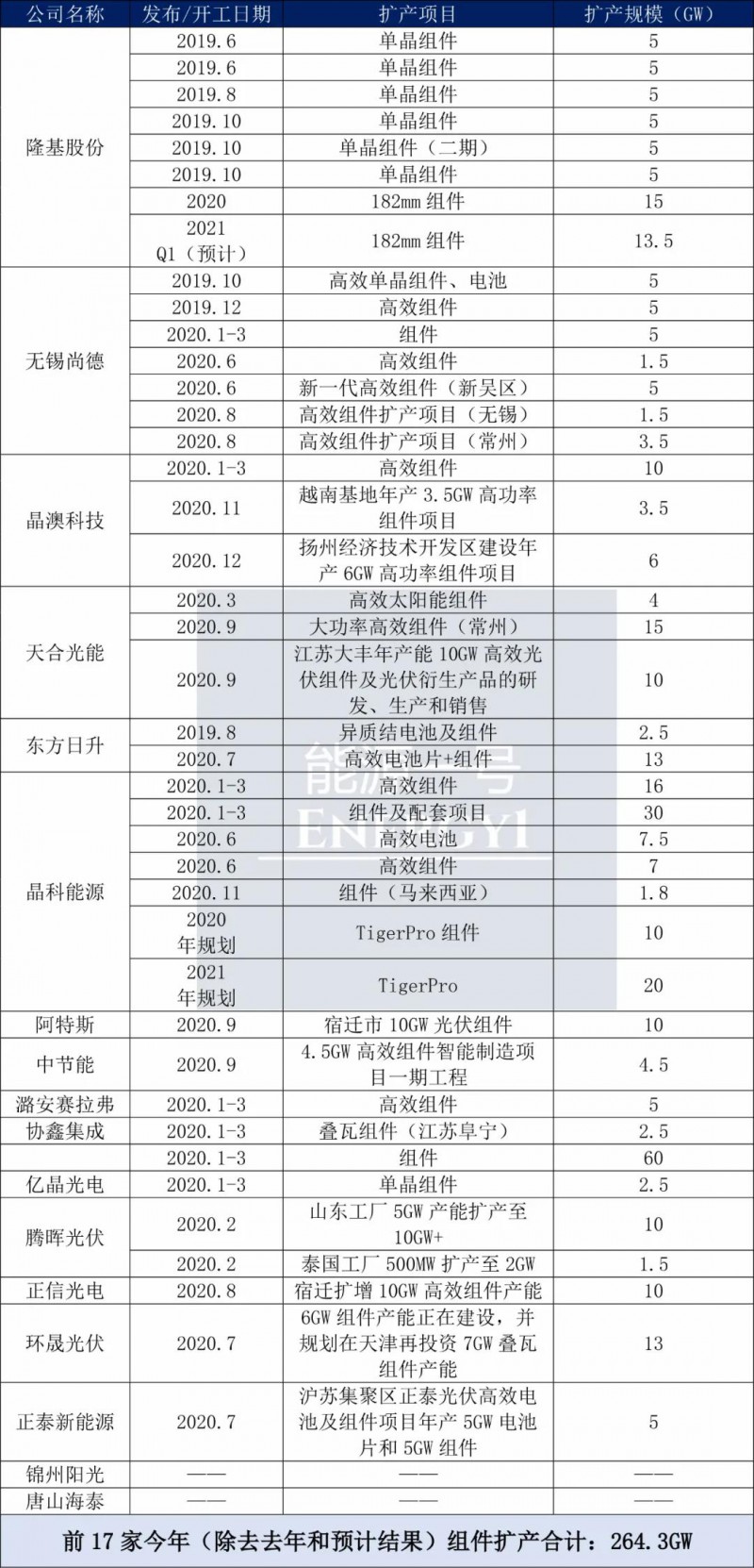 圖|前17家組件擴(kuò)產(chǎn)概況