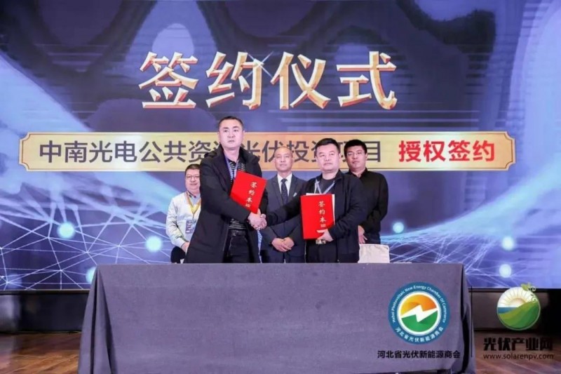 論壇現場還舉行了中南光電公共資源光伏投資項目授權簽約儀式,中南光電代表閆樹亮與多家縣域經銷商舉行簽約。