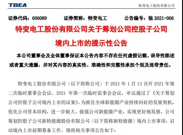 公開資料顯示,新特能源主營業務包括多晶硅的生產與銷售,風能、光伏資源的開發、建設及運營等,法定代表人為張建新,注冊資本120000萬元。公告指出,新特能源業務領域、運營方式與特變電工其他業務之間保持較高的獨立性,獨立董事也認為,本次籌劃新特能源境內上市事宜符合特變電工的戰略規劃和長遠發展,不存在損害公司及股東、特別是中小股東利益的情形。