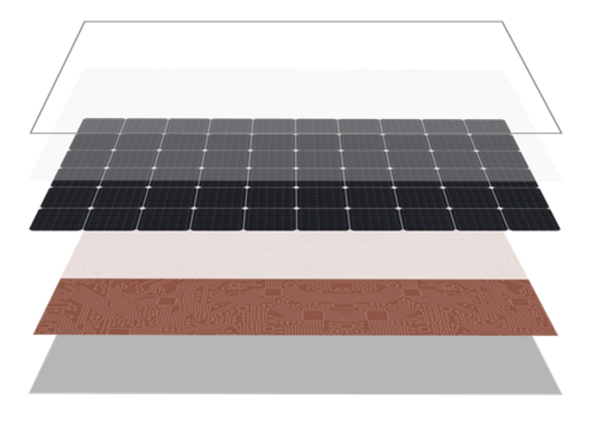 區(qū)別于傳統(tǒng)光伏組件結(jié)構(gòu),去除正面焊帶設(shè)計(jì),電流運(yùn)動(dòng)均在背面進(jìn)行,減少正面遮擋,把組件正面受光面積利用至極致,實(shí)現(xiàn)轉(zhuǎn)換效率質(zhì)的提升,必然成為單玻組件“究極形態(tài)”。