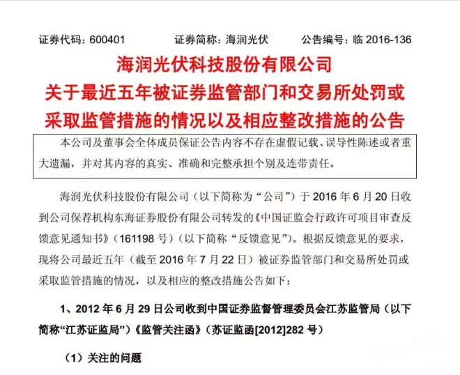 頻繁違規(guī)海潤(rùn)光伏5年遭8次監(jiān)管處罰