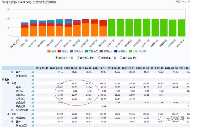 查閱該公司財(cái)報(bào)發(fā)現(xiàn),其主要經(jīng)營(yíng)產(chǎn)品毛利率,組件、電池片及發(fā)電收入16年中的毛利分別是49%、10%、16%,于15年底相比還略有提高,公司主要產(chǎn)品銷售毛利率下降根本站不住腳。