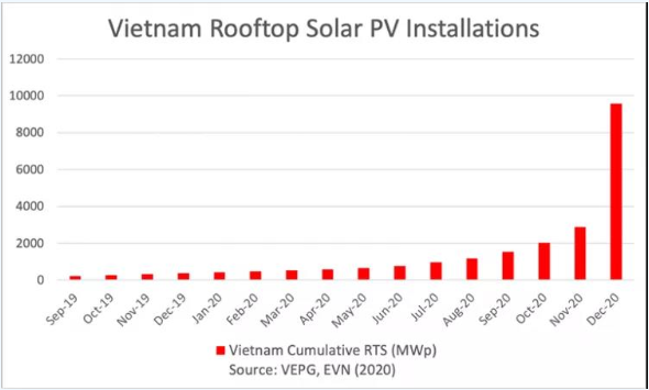 圖片:2019年9月至2020年12月,越南屋頂光伏累積裝機容量柱狀圖