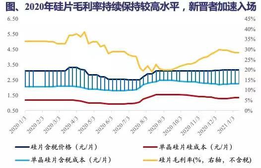 以硅片為例,眾所周知,在該領域,隆基擁有無可匹敵的成本優(yōu)勢,產能持續(xù)擴張帶來的規(guī)模優(yōu)勢疊加嚴格的成本管控能力,使得隆基的盈利能力逐年攀升,也造就了光伏上市公司的市值紀錄的神話。對于后來者來說,突破龍頭企業(yè)的成本護城河幾乎難于上青天,但從市場供應來說,新進入的企業(yè)將帶給硅片的客戶——電池企業(yè)更多的采購選擇,無論是從產品供應還是成交價格,電池企業(yè)將獲得更多的主導權。