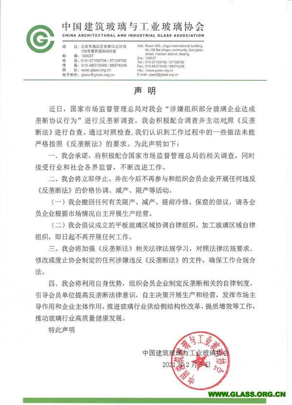 聲明內容顯示,協會將積極配合相關調查,接受行業和社會各界監督。同時,撤回任何有關限產、減產、提前冷修、保窯的倡議,今后不再參與和組織會員企業開展任何違反《反壟斷法》的相關活動。