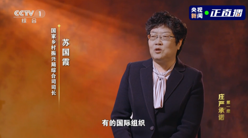 在第一集中,劉永富出鏡接受采訪,他的身份是“原國務院扶貧辦主任”。此前擔任國務院扶貧辦綜合司司長的蘇國霞,則以“國家鄉村振興局綜合司司長”的身份出鏡。