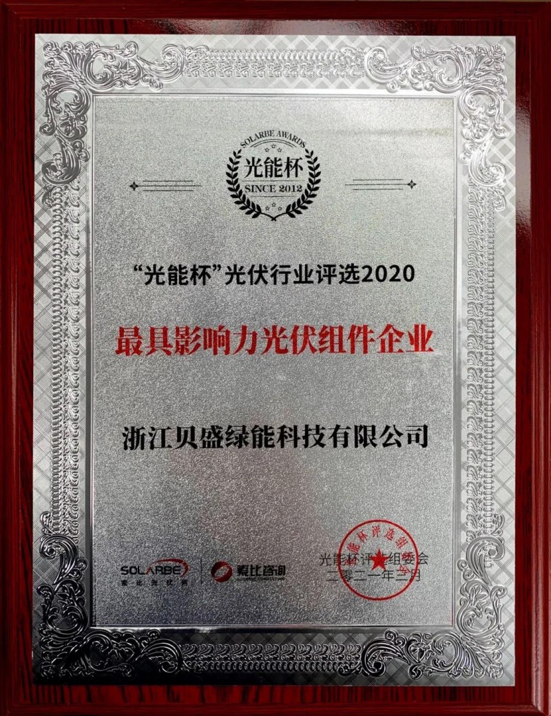 2020“光能杯”頒獎現場、貝盛綠能獎牌