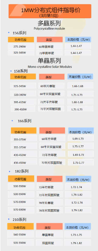 組件還在漲 !1MW分布式光伏組件報價表(3月第1周)