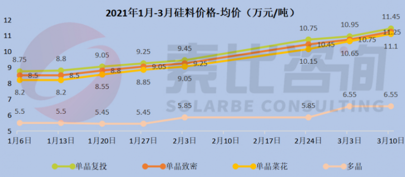 單晶致密均價(jià)11.25萬(wàn)元/噸,環(huán)比上漲4.65%,近三周平均漲幅6.83%,最高成交價(jià)11.70萬(wàn)元/噸;