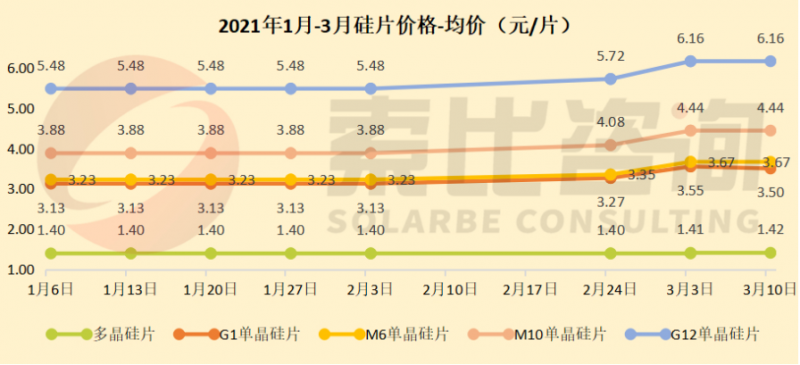 G12單晶硅片均價(jià)6.16元/片,最高成交價(jià)6.16元/片。