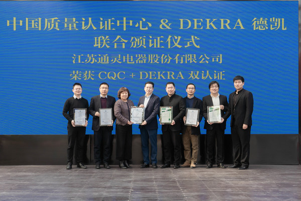 此次雙方共同為江蘇通靈電器股份有限公司首次頒證,深刻表明了中國質量認證中心(CQC)與DEKRA德凱致力于保障光伏產品安全的宗旨,從而幫助更多質量和產品優良的光伏企業走向國際。
