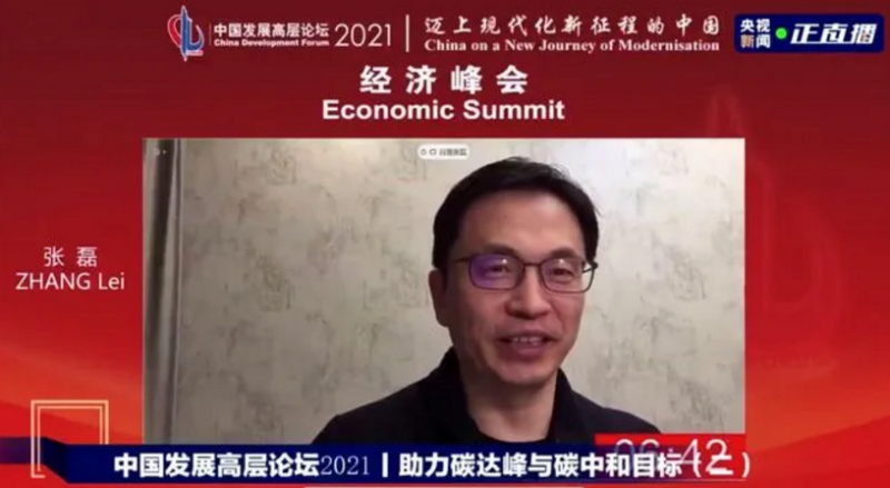 本屆論壇主題為“邁上現代化新征程的中國”,圍繞推動高質量發展和構建新發展格局,探討中國2021年經濟社會以及未來五年的發展方向,涉及科技創新,綠色轉型,鄉村振興等主題。3月20日舉辦的經濟峰會“助力碳達峰與碳中和目標”分組會,由中國國際金融股份有限公司首席執行官黃朝暉主持,參與嘉賓除了張磊之外,還包括中國華能公司董事長舒印彪、百威集團全球首席執行官薄睿拓、清華大學氣候變化與可持續發展研究院常務副院長李政、波士頓咨詢首席執行官李瑞麒。
