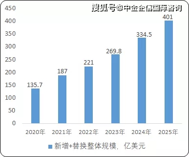 (2)全球光伏逆變器行業市場分析:2010年以來,全球光伏逆變器的出貨量基本處于高速增長狀態。據中金企信國際咨詢公布的《2021-2027年中國光伏逆變器市場競爭戰略研究及投資前景預測報告》統計數據顯示:2020年全球光伏逆變器的新增及替換整體市場規模將達到約136GW,且將在未來數年保持在平均20%以上的增長速度,至2025年全球光伏逆變器新增及替換整體市場將有望達到400GW的市場。
