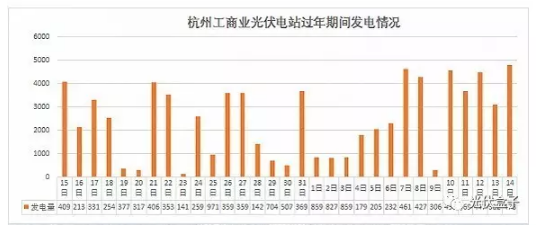 以杭州地區工商業光伏電站為例,時間跨度為2017年1月15日至2月14日,詳細發電情況請看下表: