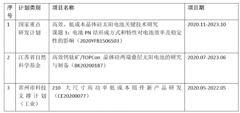 N型TOPCon電池技術及產業化研究:公司實驗室最高效率穩定在24.58%(單晶)及23.22%(多晶)。量產線實驗批次電池平均效率達到23.6%,最高達到24.05%,為下一代210mm尺寸TOPCon電池產業化提供了技術基礎。此外,天合光能圓滿完成了江蘇省科技廳重大成果轉化項目 “高性能低成本N型晶體硅太陽電池雙玻組件研發及產業化” 并通過驗收。