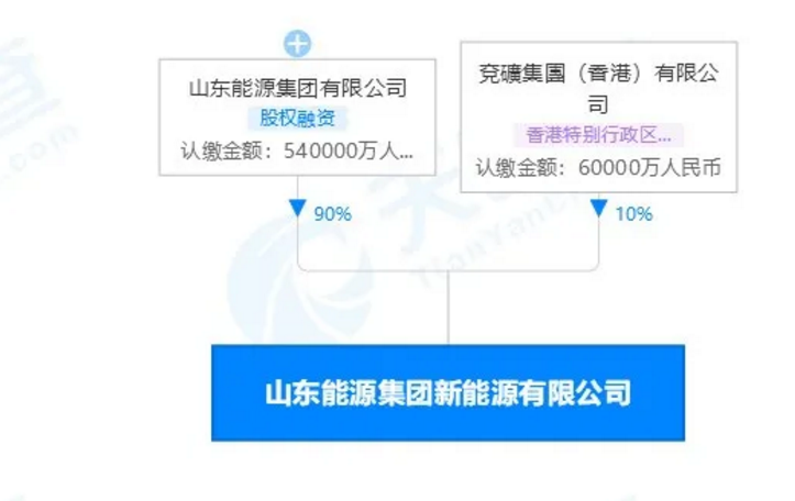 天眼查股權穿透顯示,山東能源集團新能源有限公司由山東能源集團有限公司、兗礦集團(香港)有限公司共同持股,持股比例分別為90%、10%。