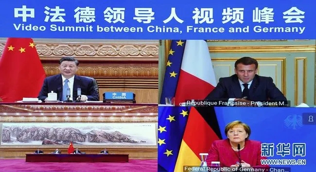4月16日下午,國(guó)家主席習(xí)近平在北京同法國(guó)總統(tǒng)馬克龍、德國(guó)總理默克爾舉行中法德領(lǐng)導(dǎo)人視頻峰會(huì)。三國(guó)領(lǐng)導(dǎo)人就合作應(yīng)對(duì)氣候變化、中歐關(guān)系、抗疫合作以及重大國(guó)際和地區(qū)問(wèn)題深入交換意見(jiàn)。