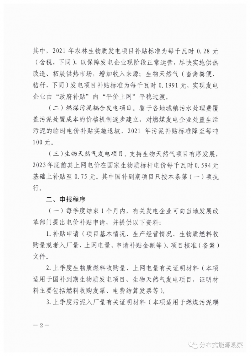 生物天然氣(畜禽糞便、秸稈,下同)發電項目補貼標準為每千瓦時0.1991元,實現發電企業由“政府補貼”向“平價上網”平穩過渡。