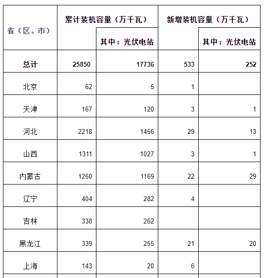 公布2021年一季度全國光伏發電建設運行情況,光伏累計裝機258.5GW,一季度新增裝機5.33GW,其中