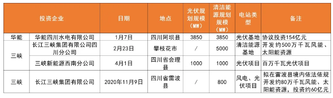 在水電大省中,風(fēng)、光伏即將跳過(guò)平價(jià),直接進(jìn)入低價(jià)時(shí)代。除了低價(jià),參與電力化市場(chǎng)交易的比例也在不斷提高。低電價(jià)加上電力市場(chǎng)化交易,對(duì)于單獨(dú)的風(fēng)、光投資企業(yè)難度較大,相對(duì)來(lái)說(shuō),對(duì)于在這些地區(qū)擁有豐富水電資源的投資商會(huì)更有優(yōu)勢(shì)。目前,以三峽、華能為代表的電力央企也紛紛在四川圈占資源,僅這兩家簽署的開(kāi)發(fā)協(xié)議已經(jīng)超過(guò)10GW,其中明確的光伏開(kāi)發(fā)規(guī)模為4.85GW。