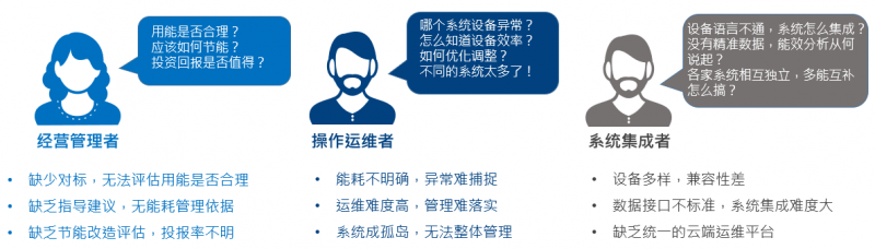 作為巨大的能量消費(fèi)體,智慧園區(qū)、大型公建、智慧工廠等的節(jié)能改造、智慧供能、能源物業(yè)、能源托管成為構(gòu)建智慧能源體系的主流選擇以及實(shí)現(xiàn)節(jié)能減排目標(biāo)的重要領(lǐng)域。然而,在落實(shí)綜合能源管理服務(wù)過(guò)程中,由于設(shè)備數(shù)據(jù)只掌握在用戶一側(cè),且設(shè)備間沒(méi)有形成互聯(lián)互通,導(dǎo)致數(shù)據(jù)的挖掘分析受阻,無(wú)法為客戶提供更進(jìn)一步的綜合能源規(guī)劃、開(kāi)發(fā)和服務(wù),無(wú)疑給能源企業(yè)管理者、集成者及操作運(yùn)維者帶來(lái)極大的困擾。