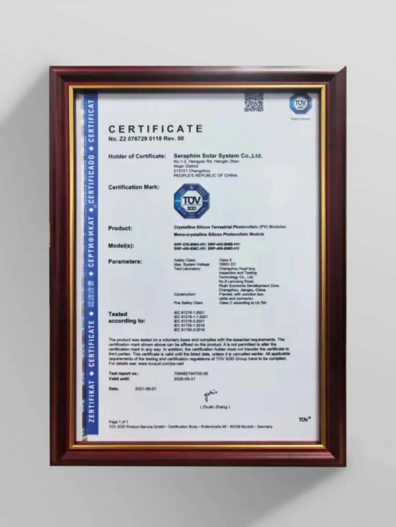 賽拉弗技術(shù)支持高級(jí)經(jīng)理吳森炎表示:“TÜV南德認(rèn)可實(shí)驗(yàn)室認(rèn)證是對(duì)賽拉弗實(shí)驗(yàn)室產(chǎn)品質(zhì)量管控能力和實(shí)驗(yàn)室的測(cè)試與研發(fā)能力的認(rèn)可。另外賽拉弗也是全球首家拿到2021版IEC61215系列標(biāo)準(zhǔn)證書的公司。作為行業(yè)領(lǐng)先的光伏產(chǎn)品制造商,賽拉弗堅(jiān)持秉承技術(shù)創(chuàng)新路線,持續(xù)加大研發(fā)投入,打造高性能產(chǎn)品,為客戶價(jià)值的最大化提供保障。”