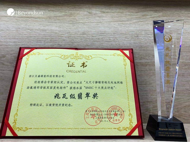 貝盛綠能認為雙面組件的大規模應用已是大勢所趨,得益于中國對高效光伏技術的推動,雙面組件的市占率逐年提高,而目前絕大多數是雙面雙玻組件。但在實際項目實施中,雙面雙玻組件由于重量問題為組件的運輸和安裝帶來了諸多困難,同時由于硅片的增大,無疑導致組件尺寸的增大,組件的重量無疑會進一步增加。而相較于雙面雙玻產品,采用透明背板的雙面組件無疑可以成為另一有效選項。