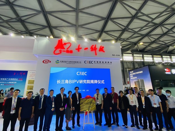 國務院原參事徐錠明、石定寰、十一科技董事長趙振元、無錫市貿促會會長徐惠娟、SNEC組委會米月、江蘇省光伏產業協會秘書長張紅升、上海交大太陽能研究所所長沈文忠、無錫市能源產業協會秘書長丁永銘等嘉賓為長三角BIPV研究院揭牌;十一科技高級副院長季超、中設國聯董事總經理朱堅紅、無錫尚德執行總裁何雙權、上能電氣總裁段育鶴、隆瑪科技董事長楊朝輝、友科太陽能總經理趙新偉代表簽約;無錫新能源商會秘書長朱剛主持儀式。