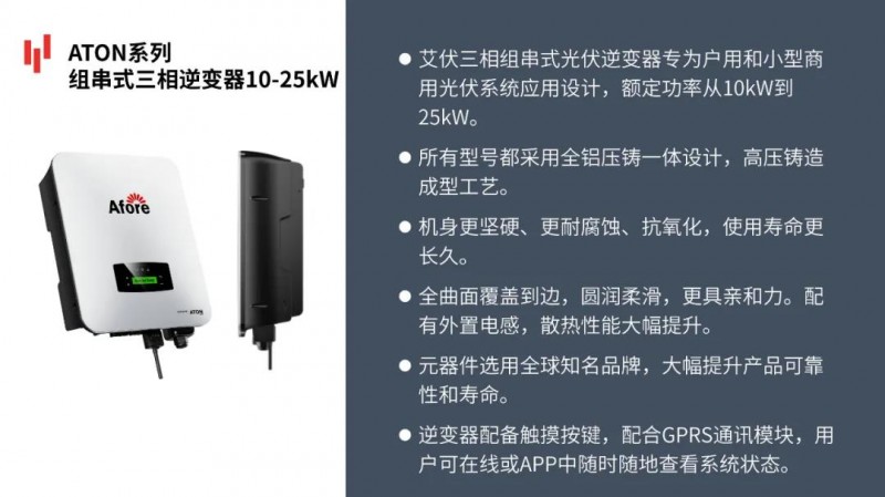 不擺花架子,高顏值,高防護,實力更強,ATON系列三相機10-25kW逆變器兼具以下優(yōu)勢與特點: