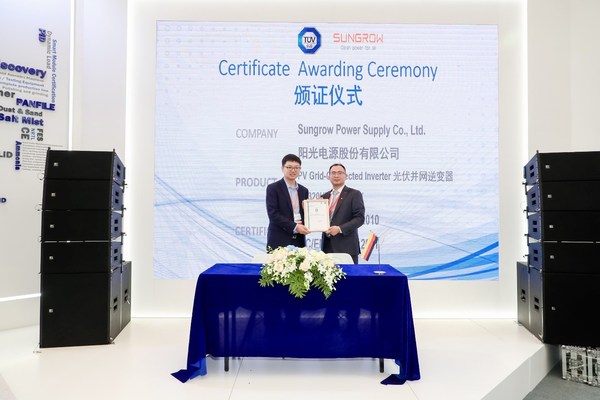 針對這款光伏逆變器的測試,TUV南德遵循嚴格的認證要求和程序,依照標準、進行全方面的測試評估,在歷時多個月之后,陽光電源這款SG320HX產品成功通過TUV南德的檢測并收獲認證。“對于任何一家企業來說,始終堅持創新、保持一種穩健的市場步伐是在激烈的競爭中開創出屬于自己一方天地的有效策略,而陽光電源正是這樣穩扎穩打、注重產品質量和先進技術的企業之一。此次陽光電源SG320HX光伏逆變器成功通過TUV南德安全認證,不僅是對陽光電源這款產品安全性與質量的認可,同時也展現了TUV南德對產品質量和技術服務的實力。TUV南德許海亮在頒證儀式上如是說。”