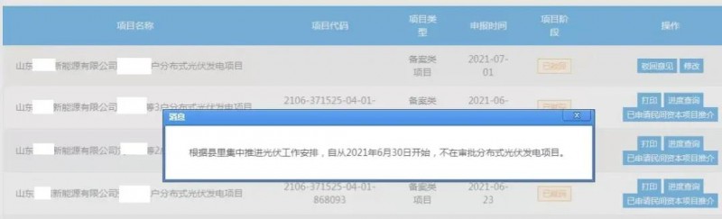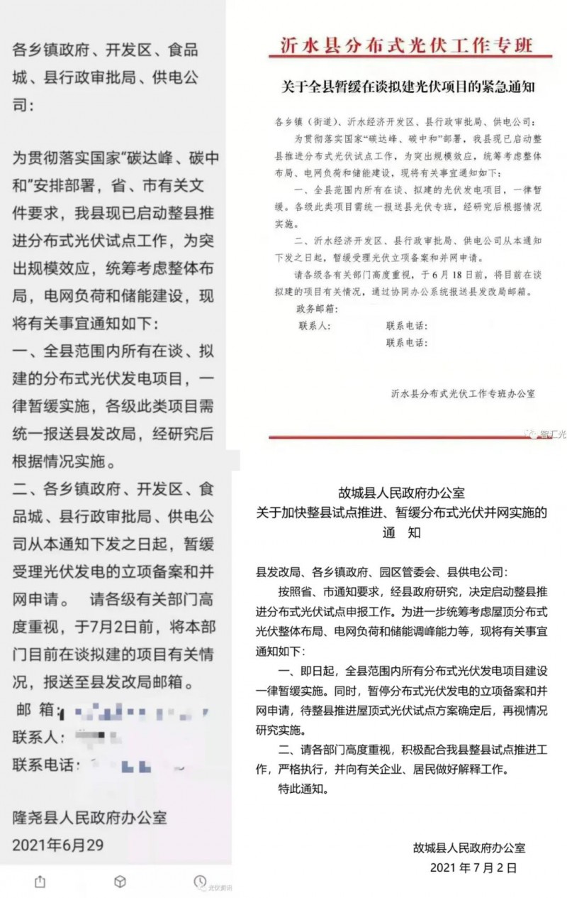 一、多地分布式光伏項(xiàng)目開發(fā)被按下“暫停鍵”河北隆堯縣、河北故城縣、山東沂水縣、浙江縉云縣等縣已經(jīng)下發(fā)文件,暫停分布式光伏項(xiàng)目的備案;福建省南安市、山東省聊城市也暫停受理屋頂分布式光伏項(xiàng)目備案。雖未有正式文件,但已無(wú)法進(jìn)行分布式光伏備案并網(wǎng)。這樣一來(lái),當(dāng)?shù)氐姆植际?a href="http://m.mybu2.cn/news/search.php?kw=%E5%85%89%E4%BC%8F%E9%A1%B9%E7%9B%AE">光伏項(xiàng)目工作將暫時(shí)停滯,新項(xiàng)目的開發(fā)被按下“暫停鍵”!